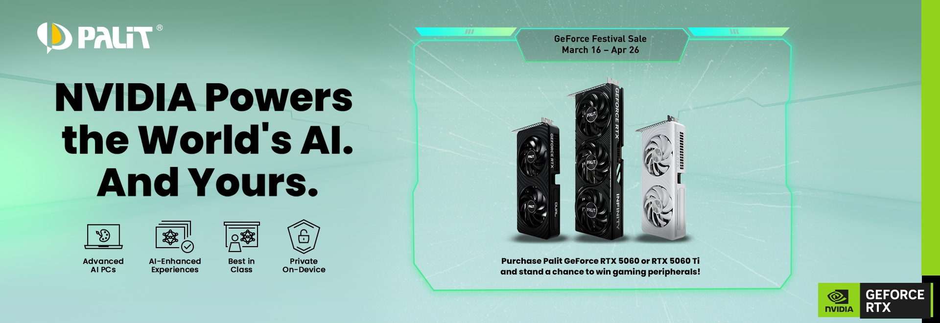 Purchase a PALIT GeForce RTX™ 5060 series GPU and stand a chance to win peripherals! Starting from 16 March until 26 April 2026.